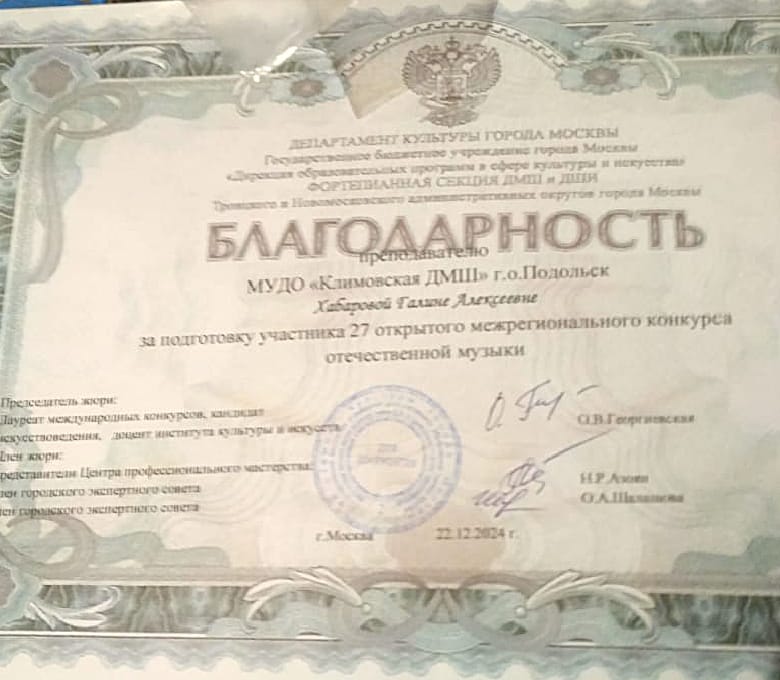 • Поздравляем Арсения Басманова со званием Дипломанта 2 степени на 27 открытом межрегиональном конкурсе отечественной музыки