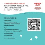 Кроме того, вы можете оказать посильную финансовую помощь через благотворительный фонд «Культурное развитие молодежи г. Подольск».