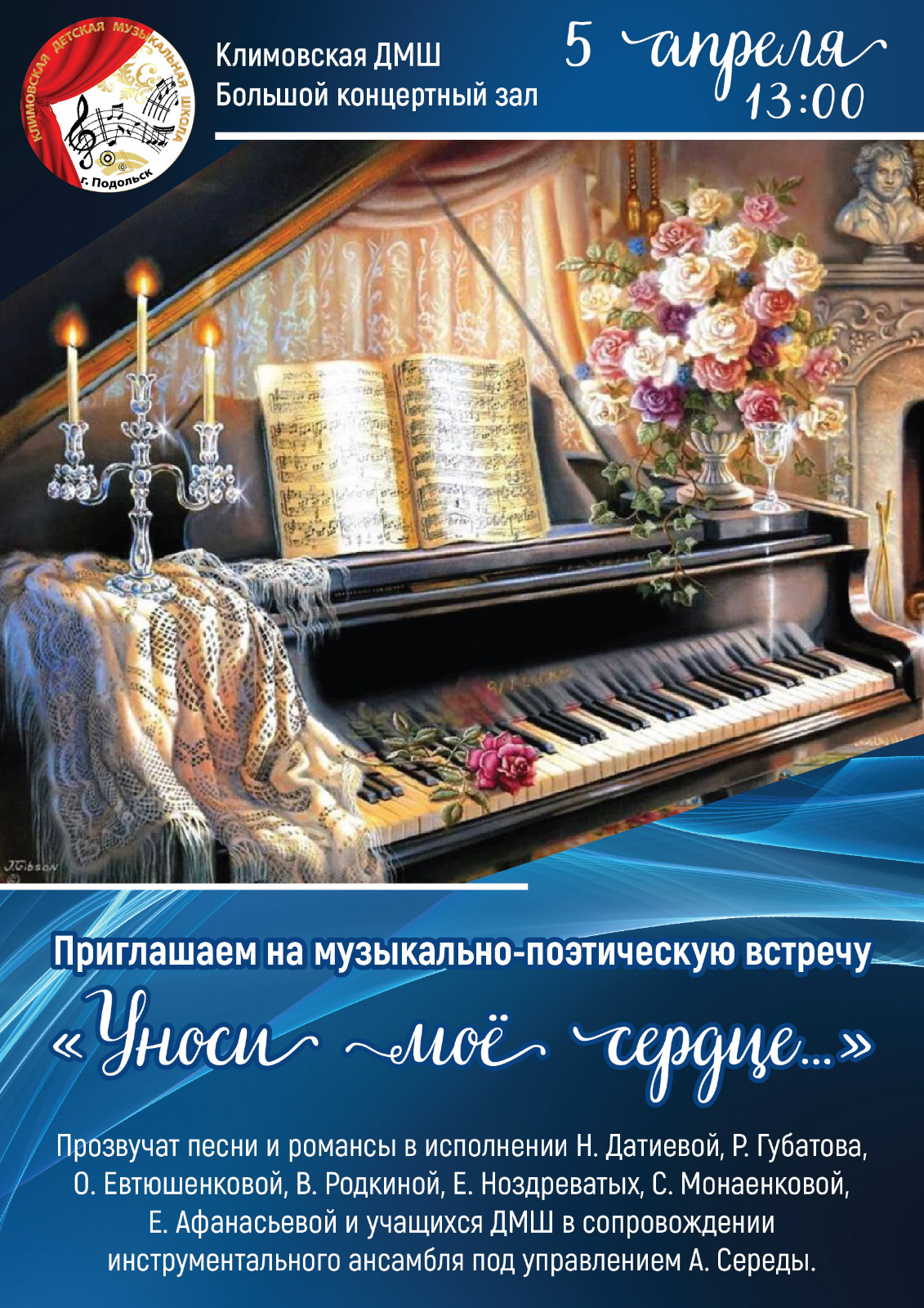 Приглашаем вас на музыкально-поэтическую встречу “Уноси мое сердце…”