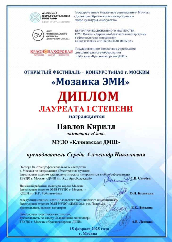 с Победой в Открытом фестивале-конкурсе ТиНАО г.Москвы”Мозаика ЭМИ”, состоявшегося 15 февраля в Краснопахорской ДШИ ???