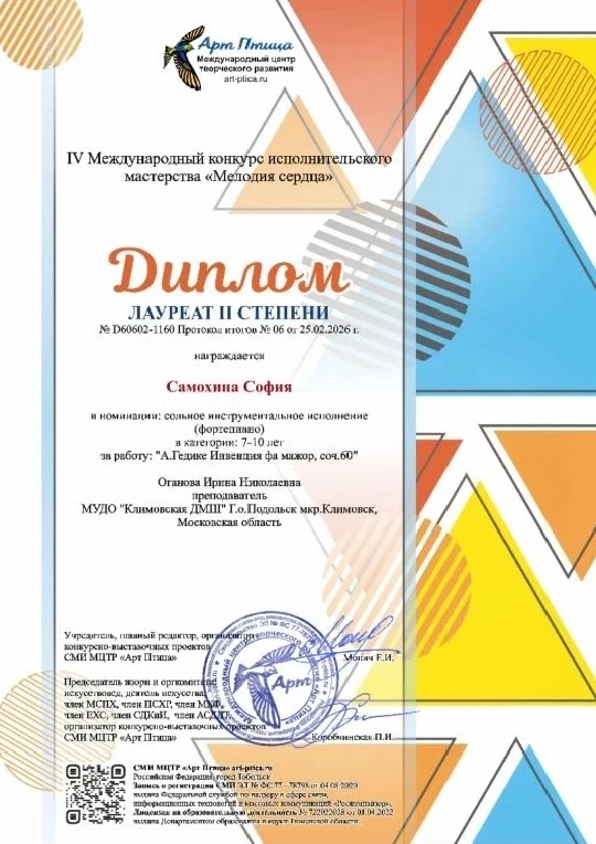 Поздравляем учащихся класса фортепиано преподавателя со званиями лауреатов IV Международного конкурса исполнительского мастерства “Мелодия сердца”