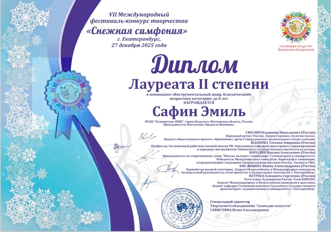 Поздравляем учащихся класса гитары с успехом в VII Международном фестивале-конкурсе “Снежная симфония”