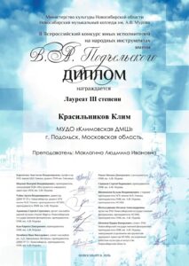 Поздравляем учащихся народного отдела с отличными результатами участия во II Всероссийском конкурсе юных исполнителей на народных инструментах имени В.А.Подъельского