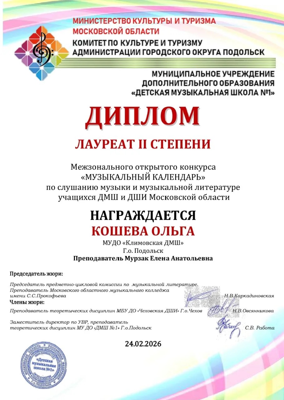 Поздравляем учащихся нашей школы с отличными результатами участия в Межзональном открытом конкурсе “Музыкальный календарь”