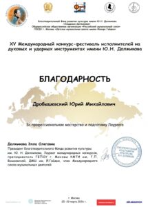 • Поздравляем ученицу по классу трубы Викторию Кондратову со званием Лауреата 3 степени XV Международного конкурса-фестиваля исполнителей на духовых и ударных инструментах имени Ю.Н.Должикова